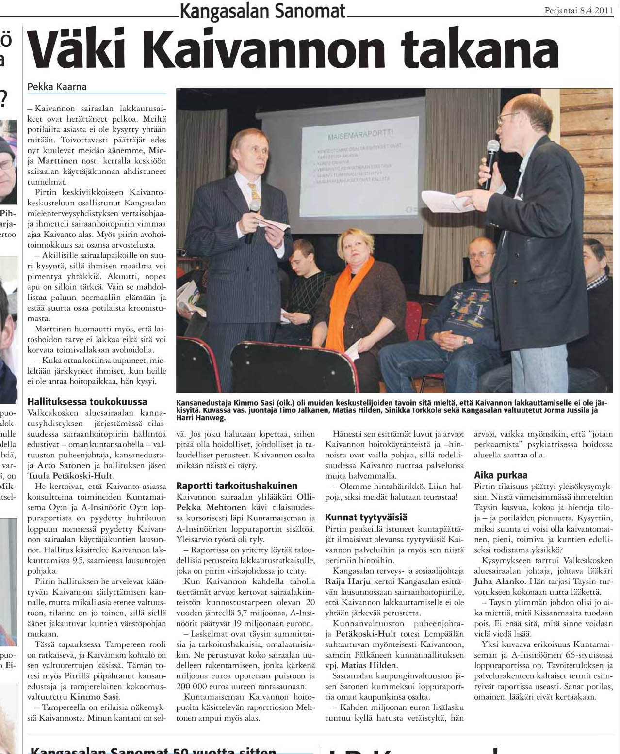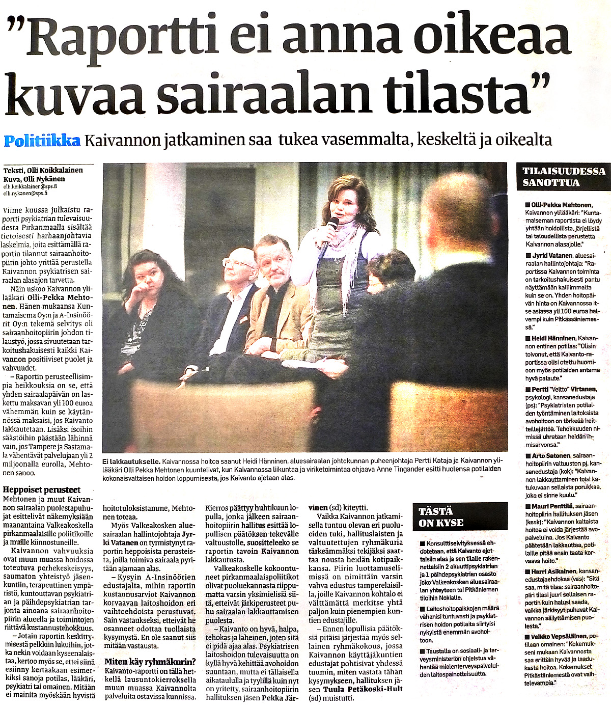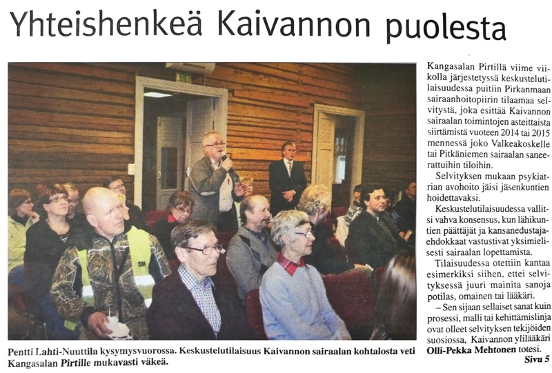 on kerätty 14000 nimeä adressiin Kangasalan Kaivannon sairaalan