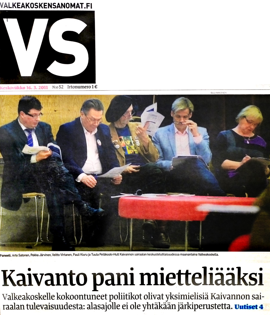Valkeakosken lukiossa 14.3.2011 terveyspoliittisen